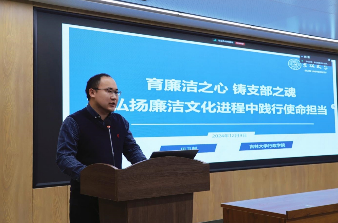 随后,田玉麒以“育廉洁之心 铸支部之魂——在弘扬廉洁文化进程中践行使命担当”为题,为党员们带来了一场生动而深刻的主题党课。田玉麒从“何为廉洁文化”讲起,解析了“廉”与“廉洁”的定义及表述,进而阐述了廉洁文化的定义与丰富内涵。接着,通过回顾中国古代政治哲学体系,探讨了廉洁文化的历史渊源,并分析了其在新时代的传承与创新。最后,作为全国党建工作样板支部——中国P站