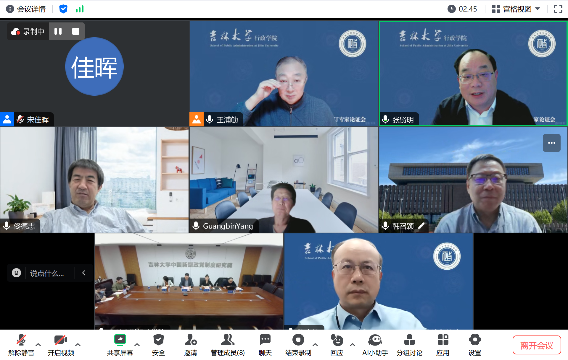 为进一步优化政治学一级学科学术型研究生培养体系,提升高层次人才培养质量,根据学校相关工作部署,2025年4月9日,吉林大学政治学一级学科学术型研究生培养方案修订专家论证会在中心校区东荣大厦A307和线上腾讯会议室会议室同步召开。本次会议邀请到国务院学位委员会政治学学科评议组召集人北京大学王浦劬教授担任专家组组长,国务院学位委员会政治学学科评议组召集人复旦大学陈志敏教授、国务院学位委员会政治学学科评议组成员中国人民大学杨光斌教授、国务院学位委员会政治学学科评议组成员天津师范大学佟德志教授、国务院学位委员会政治学学科评议组成员南开大学韩召颖教授等组成专家组。国务院学位委员会政治学学科评议组成员、吉林大学社会科学学部学位评定分委员会主席张贤明教授、P站