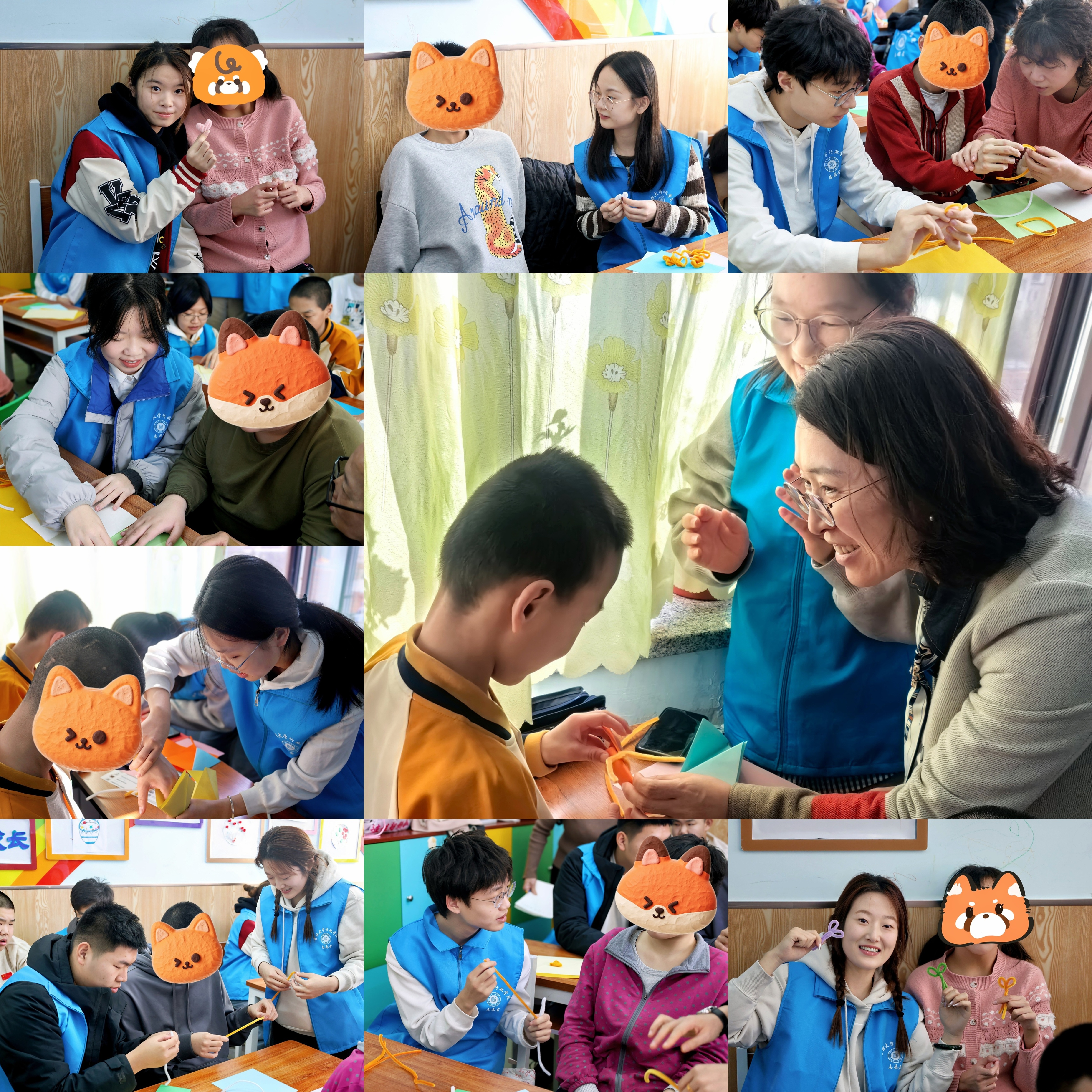 在学校老师的指导帮助下,学院志愿者和孩子们开展了折纸、扭扭棒手工制作等互动游戏,在零距离互动中,志愿者怀揣尊重与理解,积极参与、耐心引导,以创作激发孩子们的兴趣,鼓励孩子们抒发情感、表达感受。成果展示环节,孩子们神采奕奕、收获满满,过程温馨愉快,温暖感人。志愿者整理手工用具并清理垃圾,与孩子们互相道别、互送祝福,与校长及各位老师交流感想、合影留念。