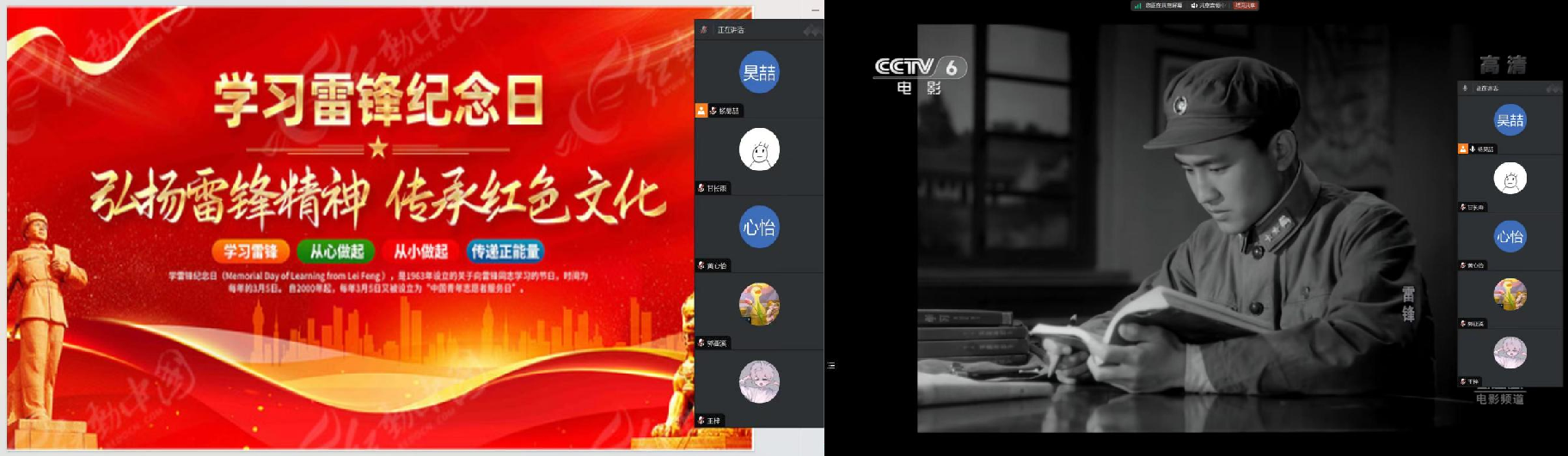 组织同学们参与线上观影活动,雷锋同志平凡而伟大的一生在屏幕上缓缓播放。
