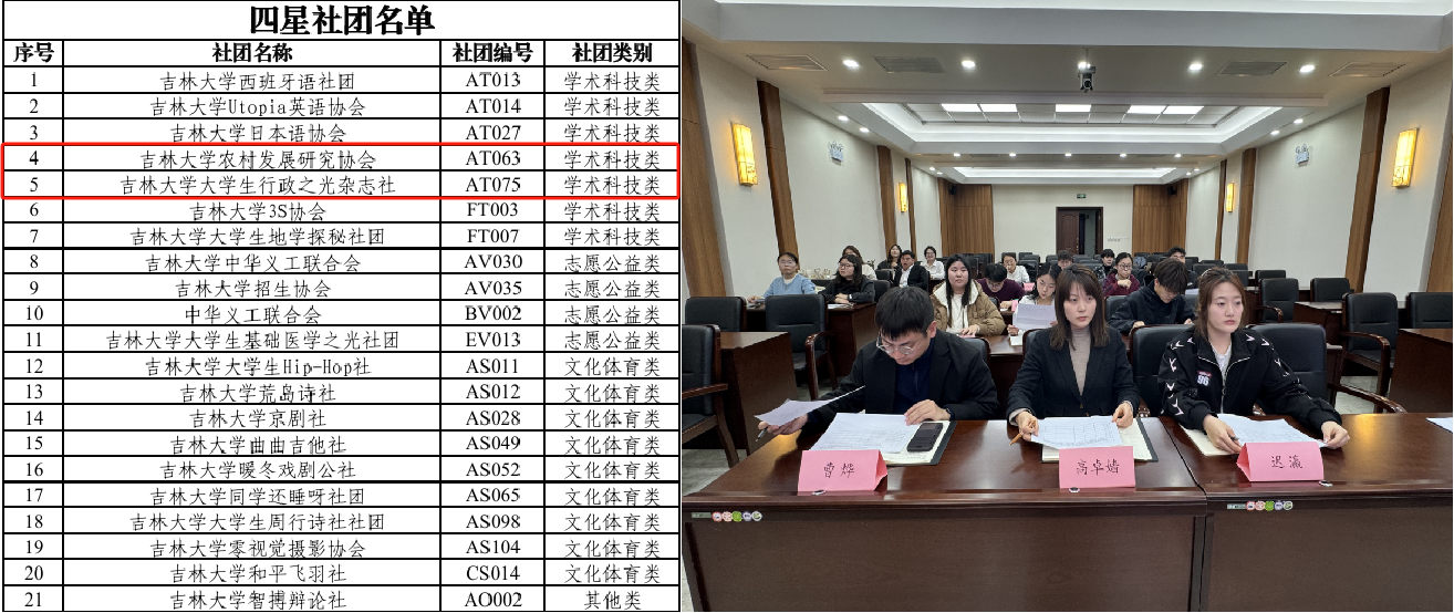 3月18日,学校团委公布吉林大学2024年度学生社团星级评定结果,学院社团吉林大学农村发展研究协会、吉林大学大学生行政之光杂志社被评定为年度四星社团,为学院社团发展树立标杆;3月21日,P站