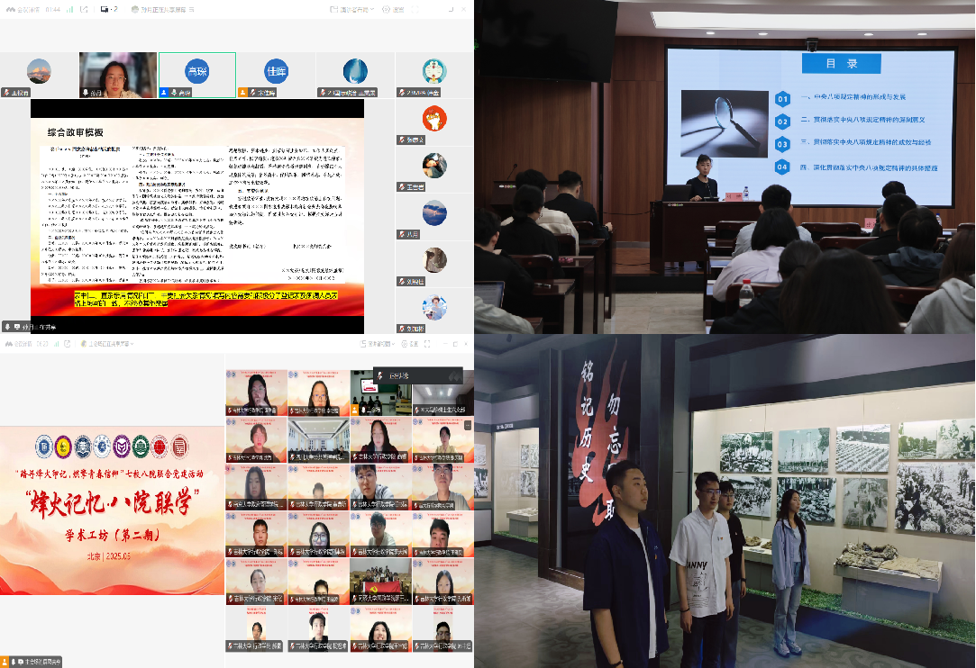 5月8日、12日,学院召开本科生、研究生党员发展工作培训部署会议,讲解政审函调、集中培训等相关事宜,确保发展工作规范有序、高效推进。5月21日,硕士学生第三党支部开展贯彻中央八项规定精神学习教育专题党课,学校党建工作联络员张冠男老师列席指导,学院副院长、廉政研究院院长、全国党建工作样板支部书记刘畅教授以《贯彻落实中央八项规定精神的成效与经验》为题,围绕中央八项规定精神的形成与发展、成效与经验进行介绍。同时,“踏寻烽火印记·燃擎青春信仰”七校八院联合党建活动于5月26日开展第二期,助力各高校青年党员重温抗战精神中蕴含的英雄气概、民族气节与爱国情怀。5月28—29日,硕士学生第三党支部学生党员赴吉林市实践研学,参观吉林市劳工纪念馆、革命烈士陵园、松花湖羊养殖基地、桦皮厂现代农业产业园等地,并与镇政府座谈交流,促进学生党员在寻访红色资源中传承东北抗联精神,探索党建引领乡村振兴与基层治理的独特价值与有效模式。