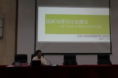 接着,全国MPA教指委副主任委员燕继荣教授为大会做基调报告。燕教授结合我国MPA教育事业的发展历程、面临的挑战以及MPA教指委的性质与任务,分析了MPA人才培养的目标与要求。燕教授同时结合自己多年的学术研究经历与我国目前面对的新党情、国情、社情,深入浅出地阐释了MPA学生应具有的“公共精神、法治理念、国际视野”的内涵与外延。