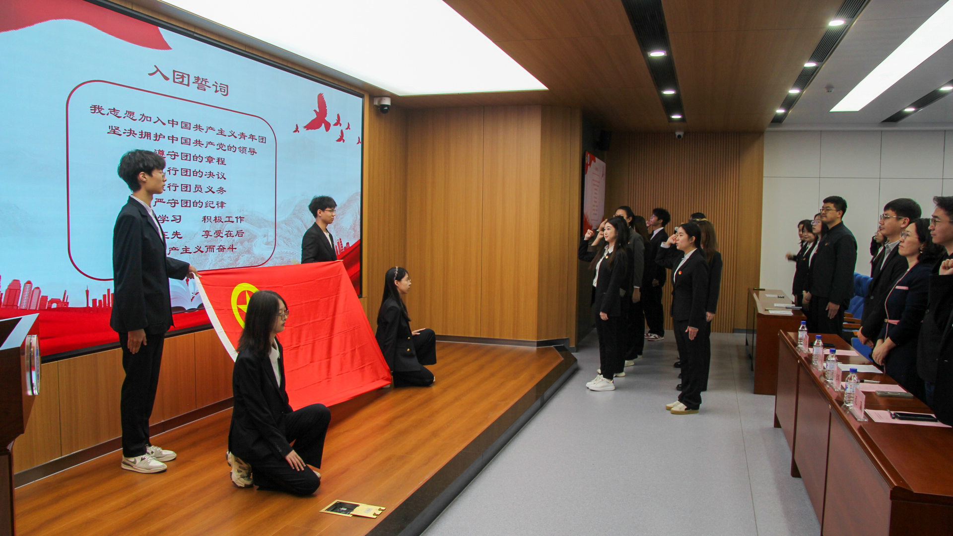 委员会2024年度“创先争优”表彰名单,共表彰6个先进团支部、58名优秀共青团员、27名优秀共青团干部与5名优秀学生记者。各与会领导、老师为获奖同学颁发证书并合影留念。会议举行新团员入团仪式,院团委副书记陈艺尹(2022级本科生)为新团员授予团徽,带领新入团团员进行宣誓,与会其他团员重温入团誓词。