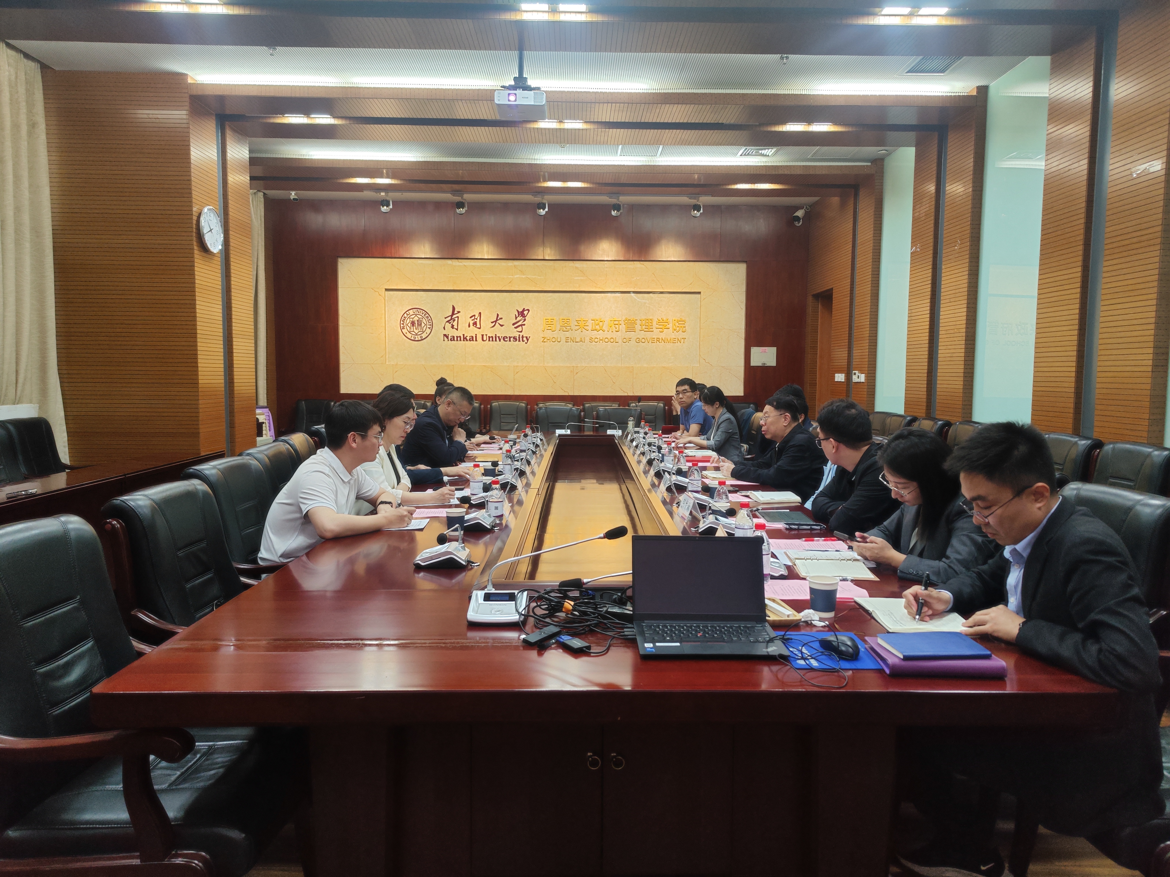 院长马雪松带队赴南开大学周恩来政府管理学院开展调研。学院党委副书记史慕华,副院长刘雪华、刘畅,科研办公室主任王斯靓,团委工作负责人曹烨参加此次调研。南开大学讲席教授及原副校长朱光磊,南开大学周恩来政府管理学院党委书记王慧,院长吴晓林,副书记兼副院长崔宇,副院长郭道久、张发林、刘婷等出席调研。南开大学周恩来政府管理学院任职的我院院友代表刘明副教授、凌争副教授共同参加活动。