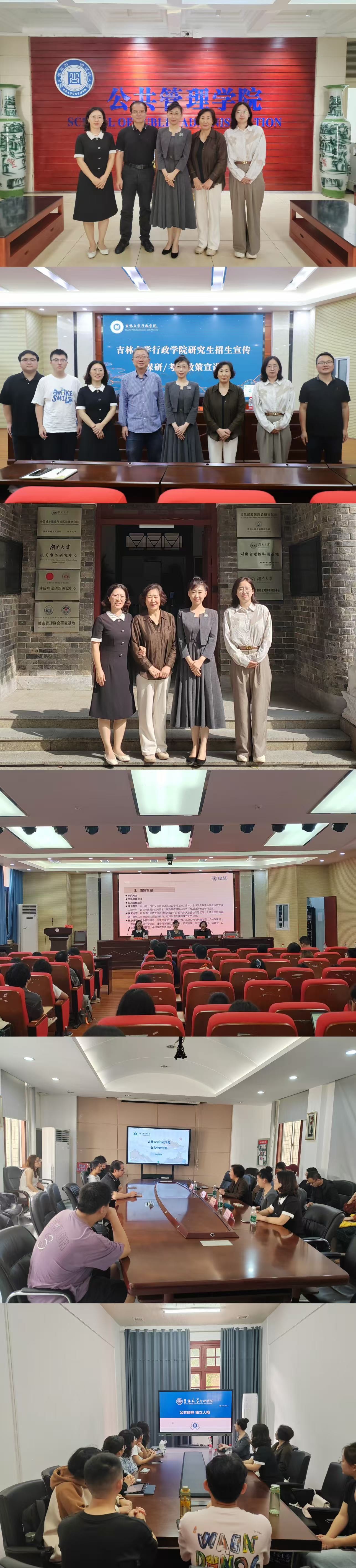 的历史沿革、学科定位、科研平台及招生规模,重点强调学院从本科到博士后的完整人才培养体系,并介绍了学院政治学学科的历史发展、师资结构、学科建设、招生政策等情况;李靖聚焦公共管理系核心内容,详细讲解了行政管理、公共治理与公共政策、应急管理、电子政务四大研究方向的特色,包括各方向的核心课程设置、科研重点及实践应用场景,让在场学生清晰了解学科培养路径;史慕华介绍了吉林大学的整体办学实力、校园生活环境及学院针对研究生的就业支持政策,热情欢迎广大学子积极报考,鼓励大家依托学院平台实现学术与职业发展目标。会后,工作组就同学们关于学习培养等方面的问题进行了细致地解答。