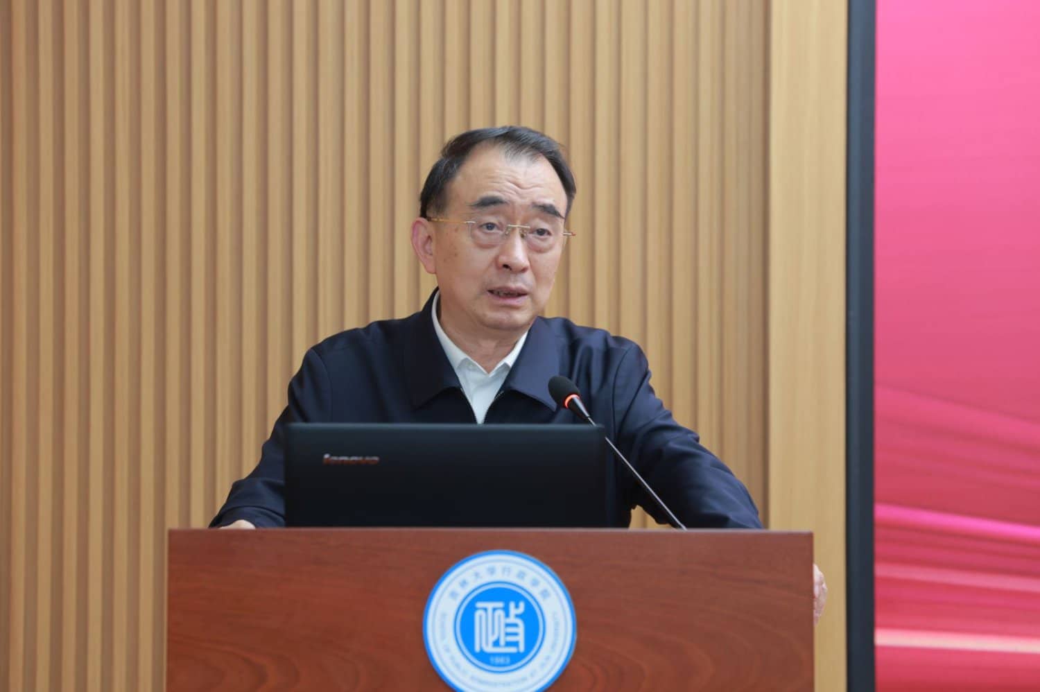 国务院学位委员会纪检监察学学科评议组成员、中国人民大学原党委副书记、纪委书记吴付来教授致开幕辞。吴付来教授在发言中表示,纪检监察学作为一级学科,是国家治理体系和治理能力现代化进程中的重要举措与自主创新,更是全面从严治党、深化反腐败斗争的战略支撑。该学科建设必须立足党和国家战略需求,紧扣时代脉搏,通过强化学科顶层设计、完善人才培养体系、深化产学研用融合,推动高质量发展。他高度肯定吉林大学作为全国中管高校,在纪检监察相关学科领域的雄厚实力与深厚社科研究底蕴,以及学校党委对学科建设的高度重视。