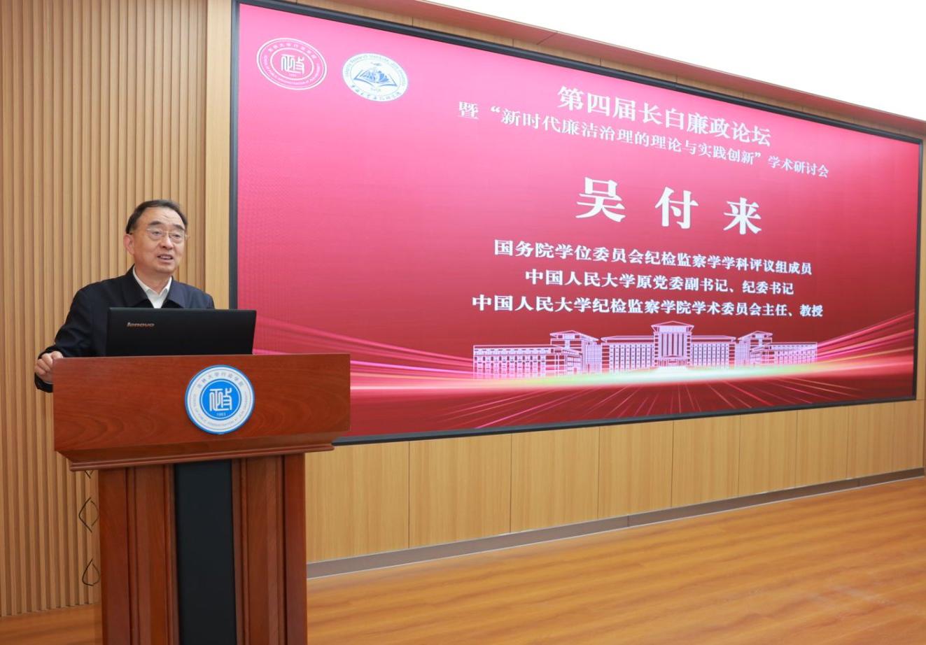国务院学位委员会纪检监察学学科评议组成员、中国人民大学原党委副书记、纪委书记吴付来教授主旨演讲