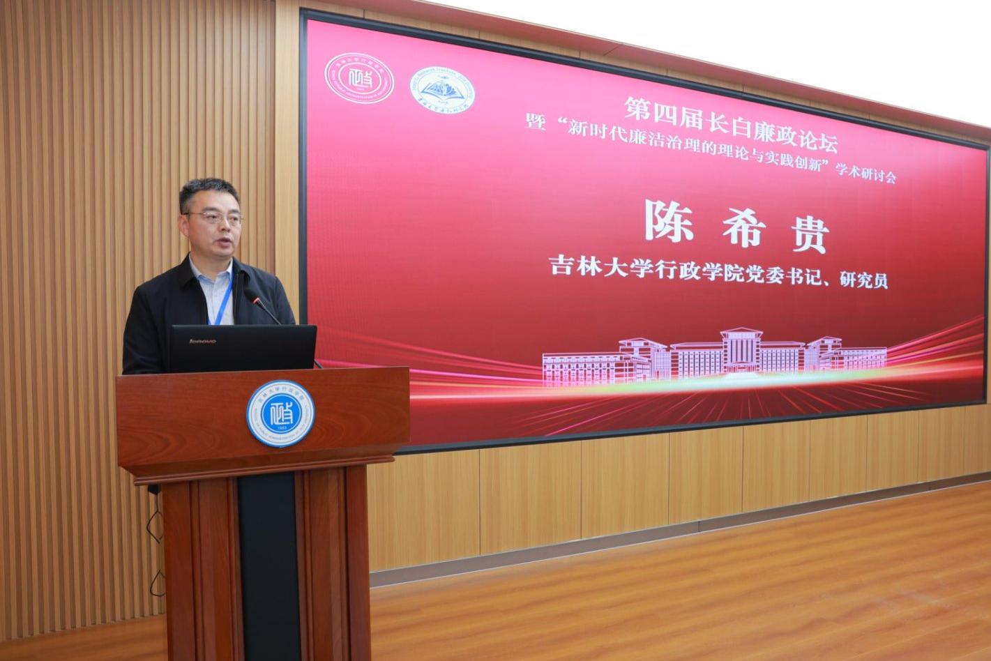 党委书记陈希贵研究员代表主办单位,在致辞回顾了廉政研究院十年发展历程。他提到,研究院自 2013 年成立以来,从廉政研究与教育中心逐步成长为吉林省人文社会科学重点研究基地,入选中国智库索引来源智库党建领域前十名,在学术专著出版、高水平论文发表、国家研究项目申报等方面成果显著,并于 2024 年开始承担教育部纪检监察专项博士研究生培养工作。他表示,学校推进纪检监察一级学科论证是顺应国家治理现代化需求的战略选择,希望研究院以此为契机,夯实学科基础、优化方向设置、强化师资队伍,为全国纪检监察学科建设贡献更大力量。