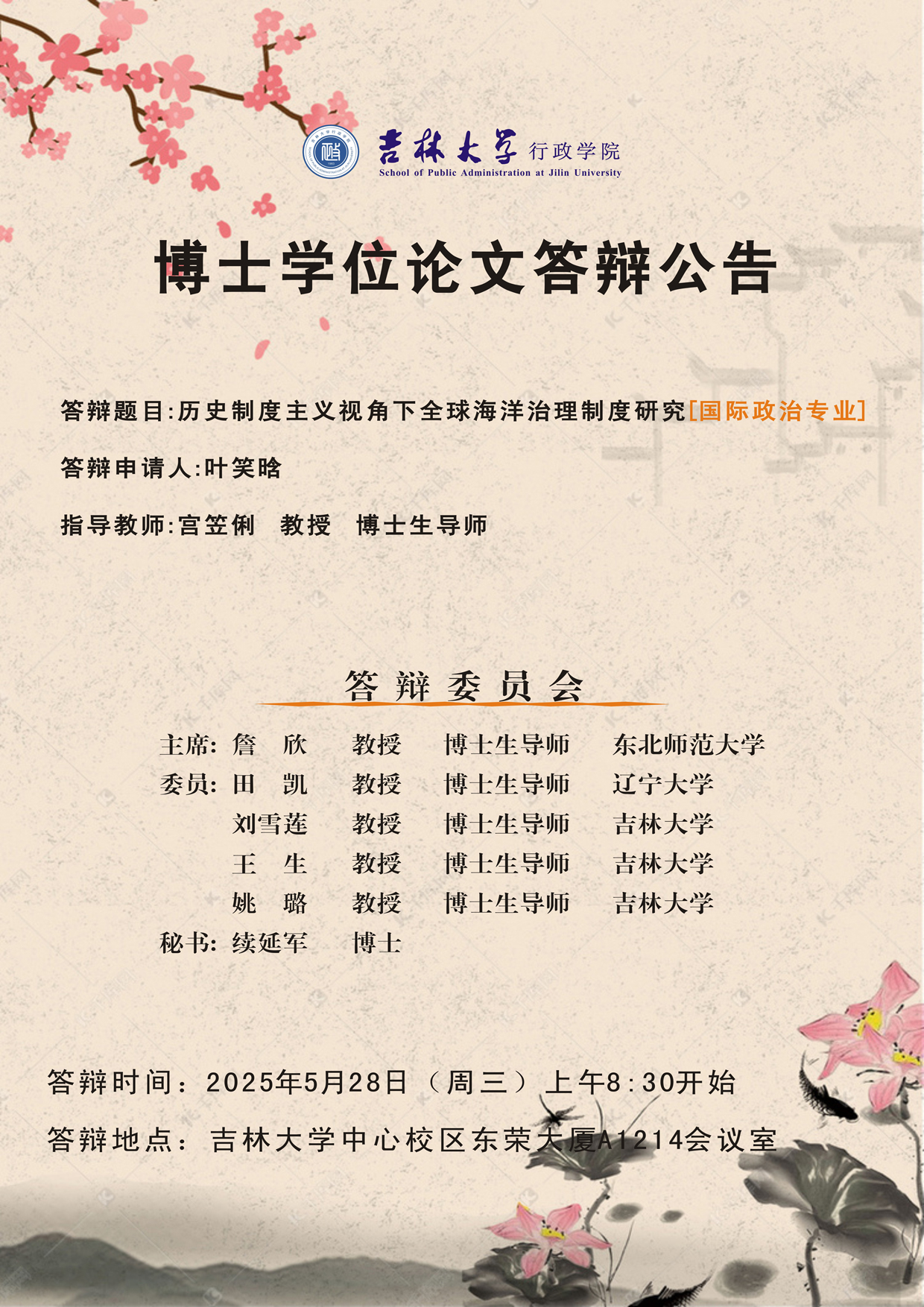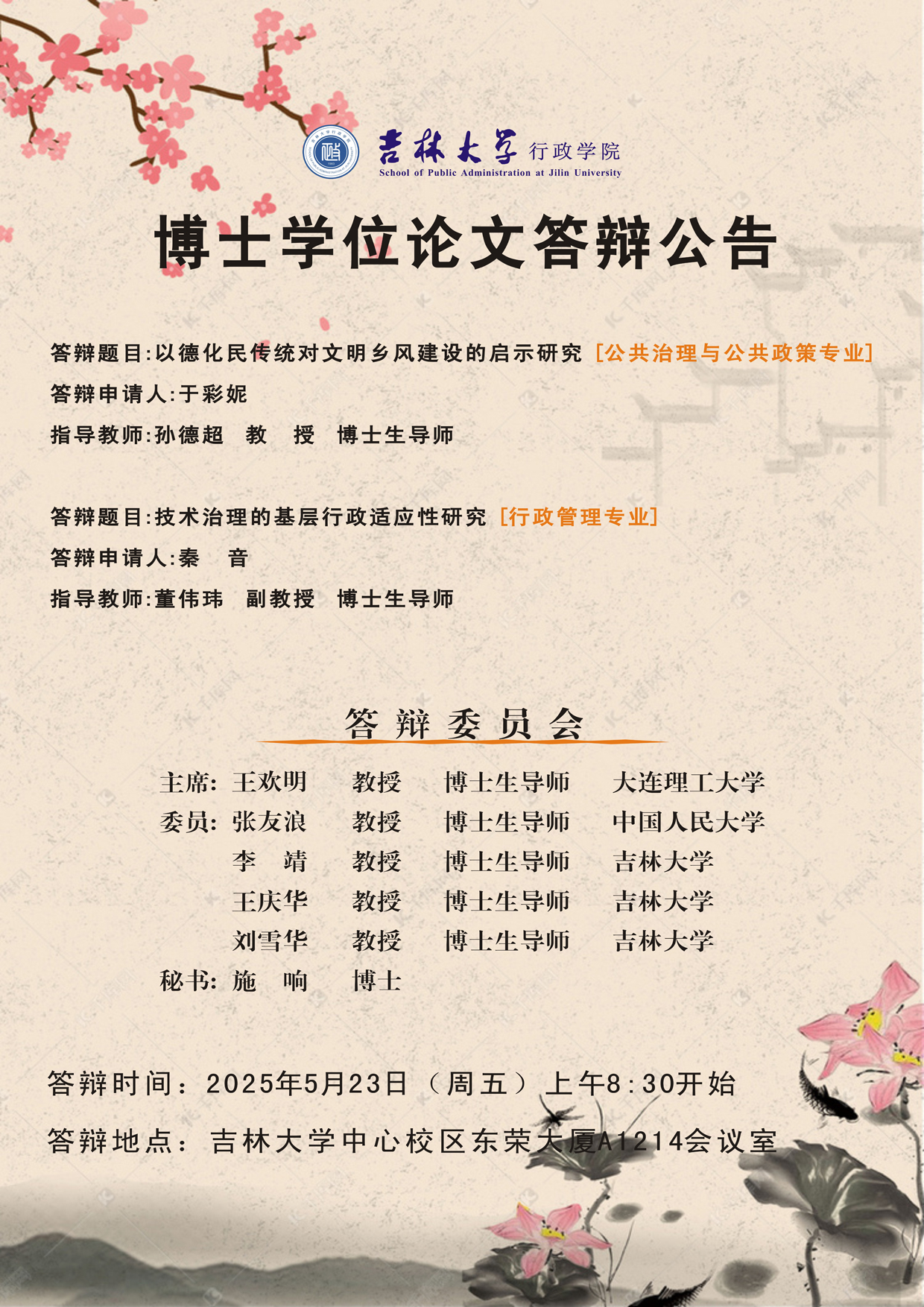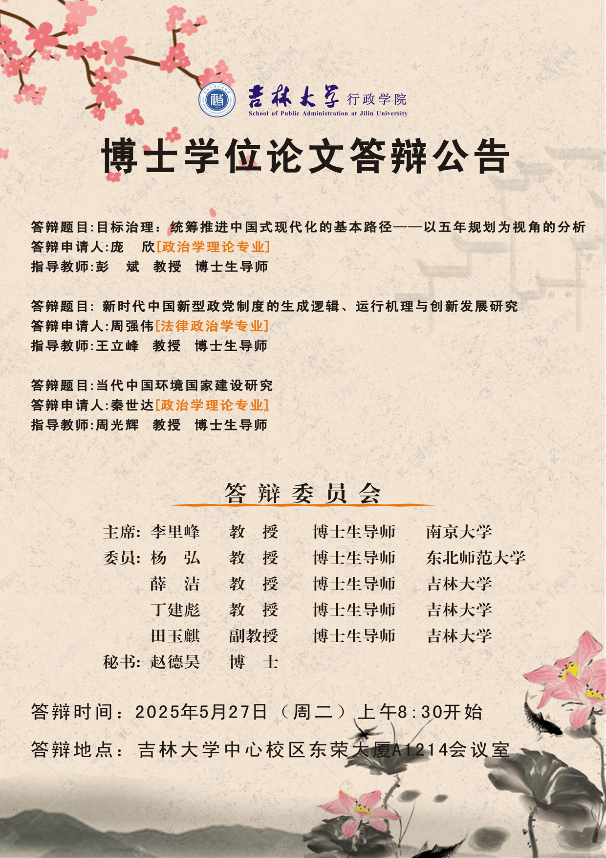 答辩地点:吉林大学中心校区东荣大厦A307会议室