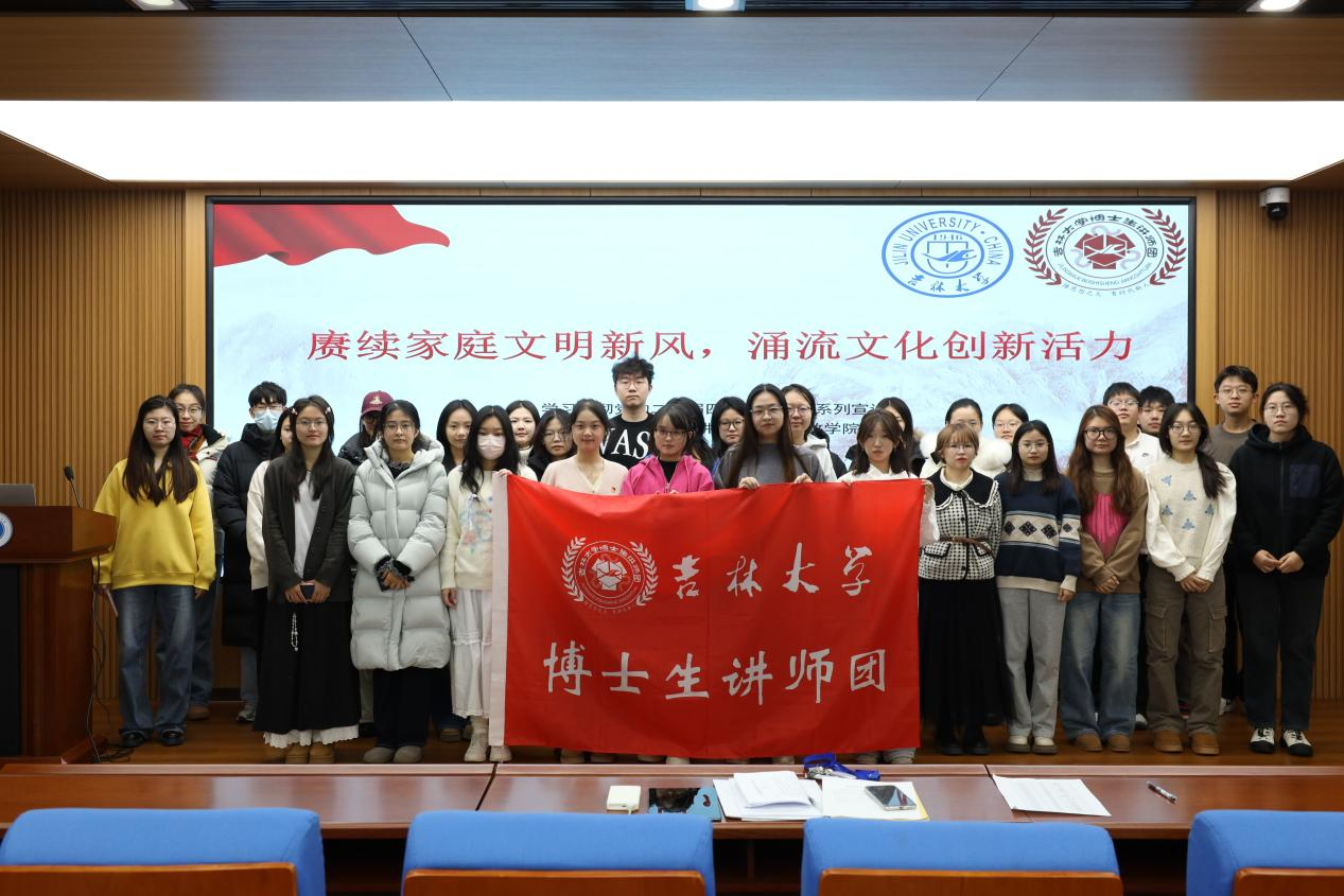 首先,支部开展了专题学习活动。本次活动特邀吉林大学博士生讲师团成员王馨颍同志作题为《赓续家庭文明新风,涌流文化创新活力》的主题宣讲。王馨颍同志以党的二十届四中全会关于激发全民族文化创新创造活力的重要精神为指引,聚焦“家庭”这一贴近生活的切入点,详细讲解了新时代文化建设的丰富内涵。